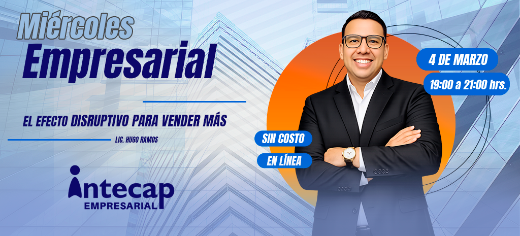 ¿Eres vendedor y quieres aumentar tus resultados? Participa en la charla “El Efecto Disruptivo para Vender Más”. Aprende estrategias innovadoras para diferenciarte, impactar a tus clientes y cerrar más negocios. Fortalece tu mentalidad comercial y adapta tus ventas a las nuevas tendencias del mercado.